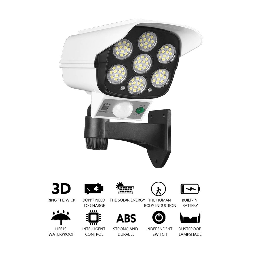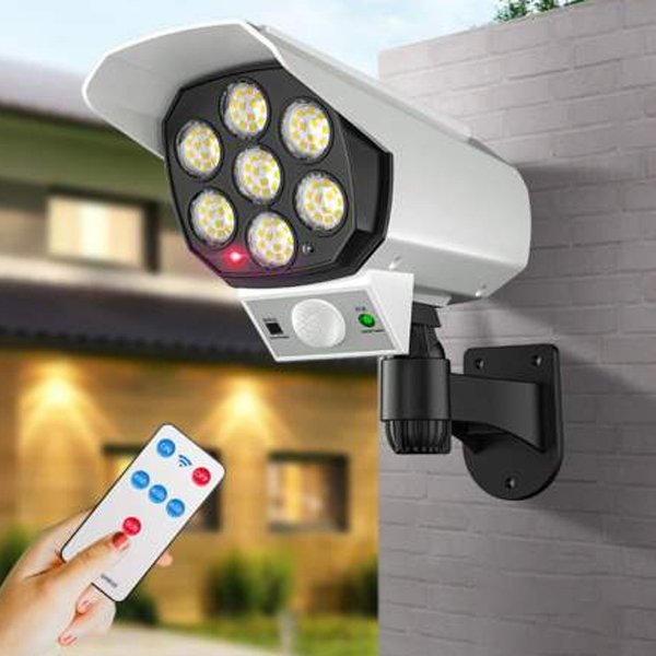 مصباح خارجي بي الطاقة الشمسية على شكل كاميرا مراقبة وحساس الحركة بدون اسلاك و بدون فاتورة كهرباء